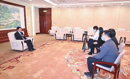 圖為全國工商聯(lián)主席高云龍接受新華社記者采訪。