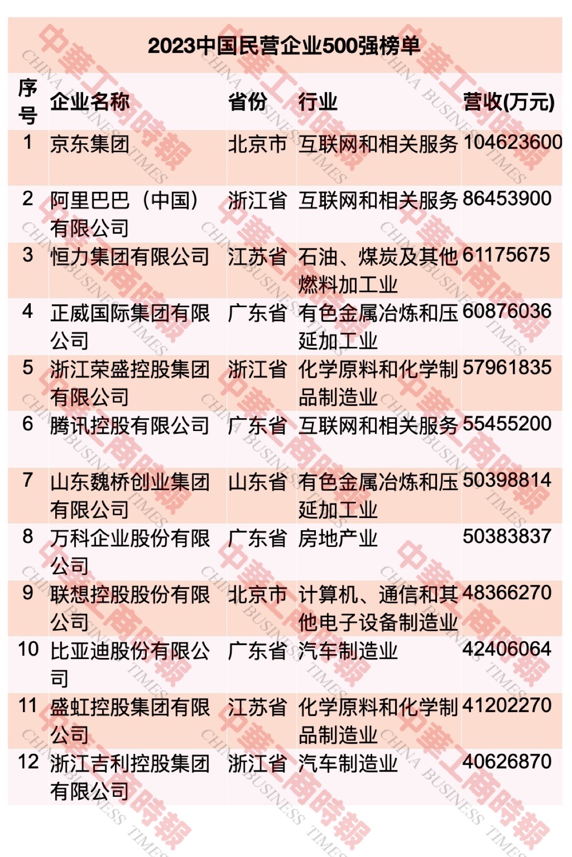2023中國民營企業(yè)500強榜單