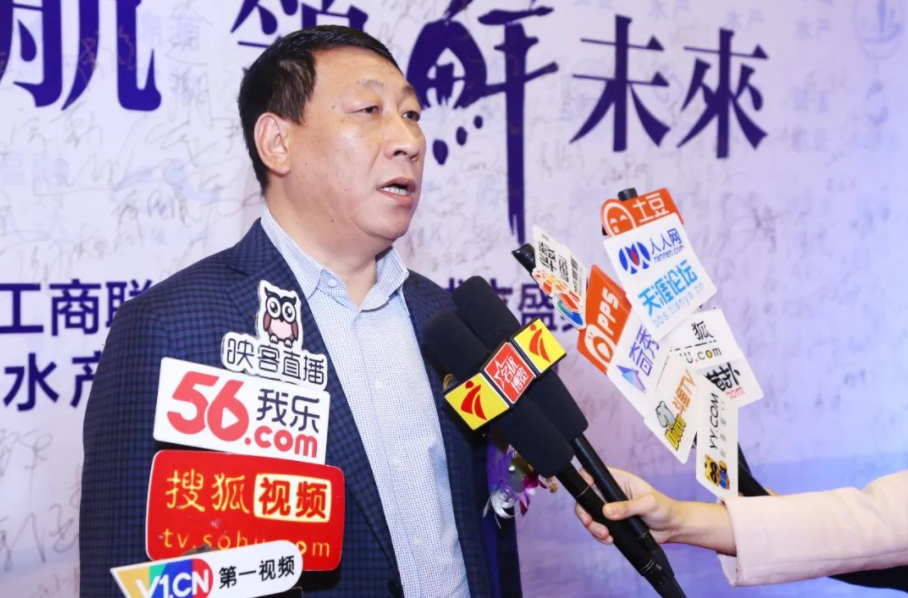 全國工商聯(lián)水產(chǎn)業(yè)商會(huì)會(huì)長田全海接受媒體采訪現(xiàn)場(chǎng)。