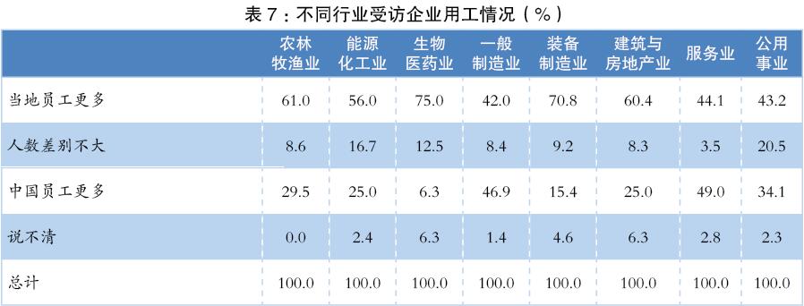 其七,一般制造業(yè)和服務(wù)業(yè)企業(yè)的員工本土化還有待發(fā)展。(見(jiàn)表7)
