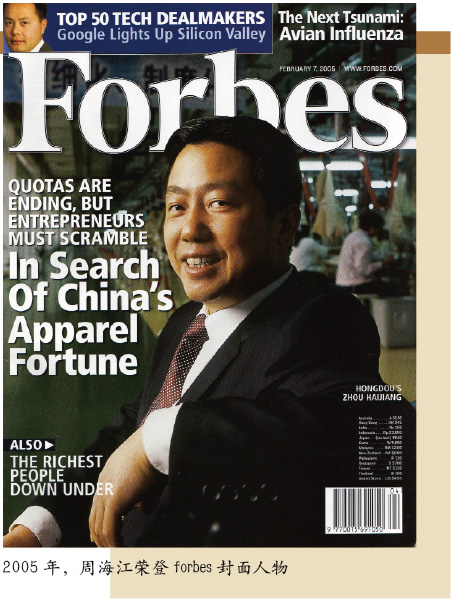 周海江的個體經(jīng)歷是一代中國民營企業(yè)家的一個縮影。正是這個群體的奮力崛起、這群人的奮發(fā)圖強(qiáng),才有了中國民營經(jīng)濟(jì)乃至中國經(jīng)濟(jì)今時今日的局面。在周海江的人生中,有許多可以大書特書的情節(jié)。2001年,他主導(dǎo)紅豆集團(tuán)在資本市場大展拳腳。2005年,他以新時代中國民營企業(yè)家的形象登上《福布斯》封面……