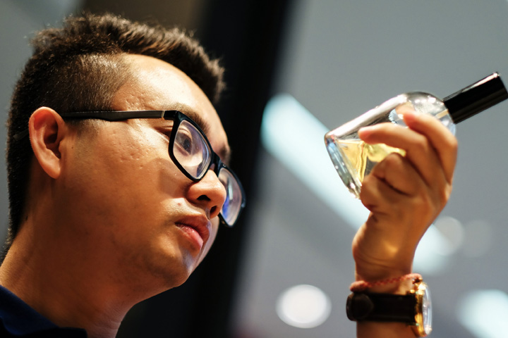 2016年5月26日,中國(guó)小伙陳宇在泰國(guó)曼谷一家精油美容用品商店里了解新上市的產(chǎn)品。